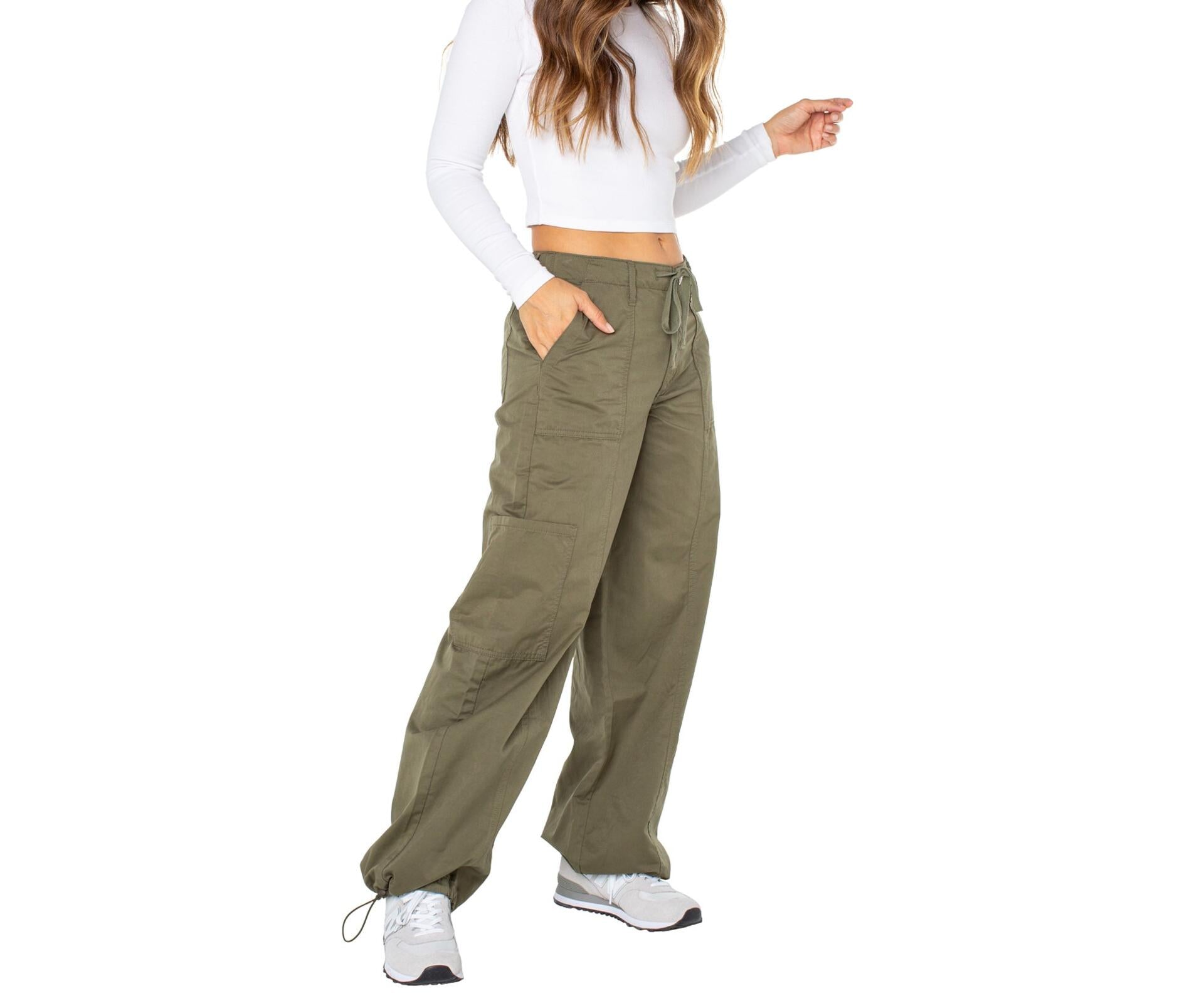 Celebrity Pink Womens and Womens Plus Wide Leg Parachute Pants Dusty Olive Sz L