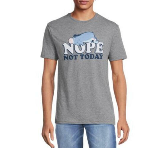 When it s just one of those days and you say Nope! Not Today! Put on this comfortable short sleeve T-shirt featuring Eeyore kick back relax and do nothing. Embrace the whimsical charm of everyone s favorite gloomy donkey with this playful graphic tee. Crafted from a cozy cotton blend it ensures all-day comfort while you lounge in style.
