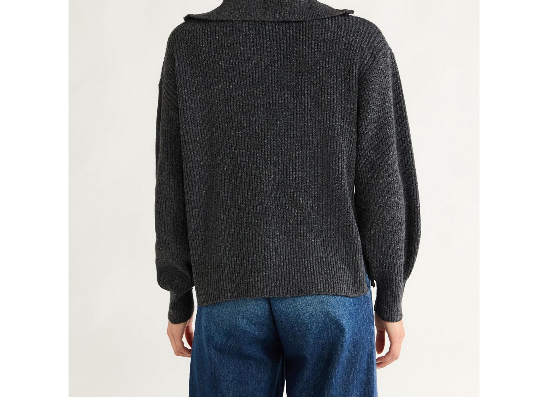 - Sleeves: Drop-shoulder long sleeves with ribbed cuffs