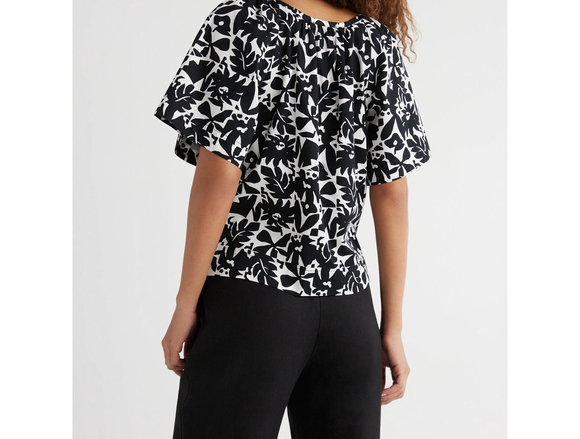Free Assembly Womens Square Neck Top with Short Sleeves Black Soot Geo Size L