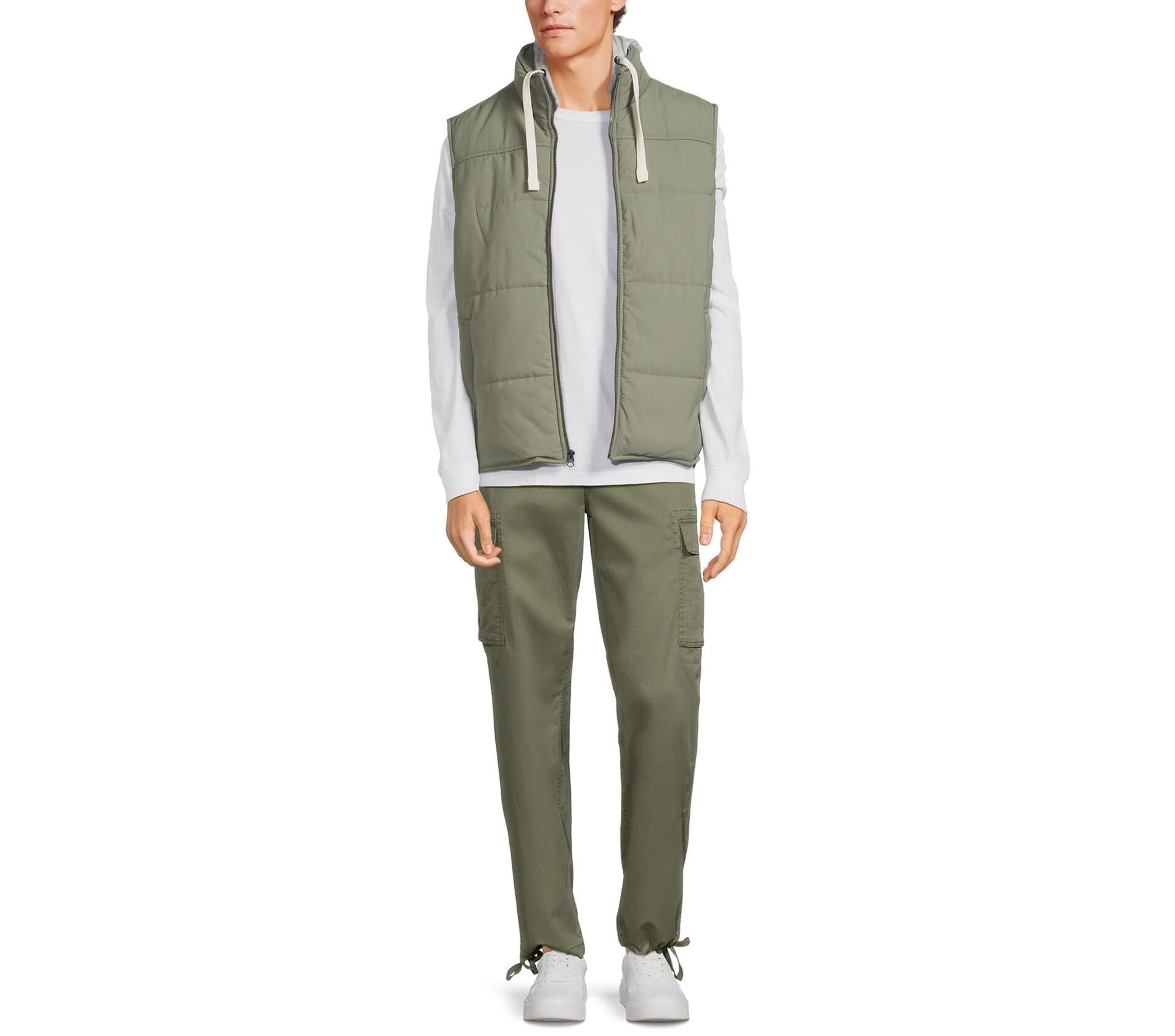 George Mens and Big Mens Hooded Vest Green Artichoke Size L