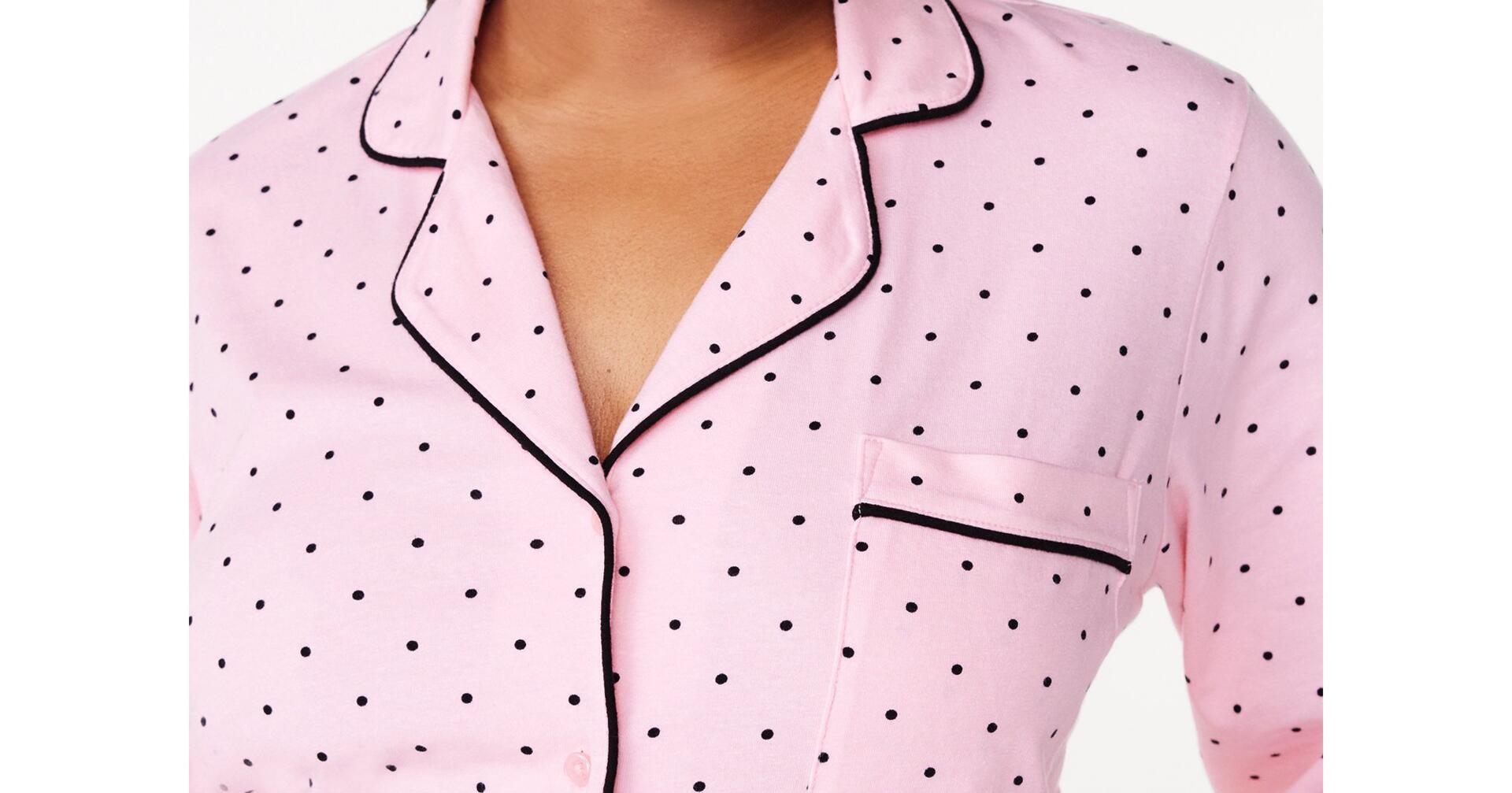 Joyspun Womens Cotton Blend Notch Collar Top and Pants Pajama Set Pink Size M