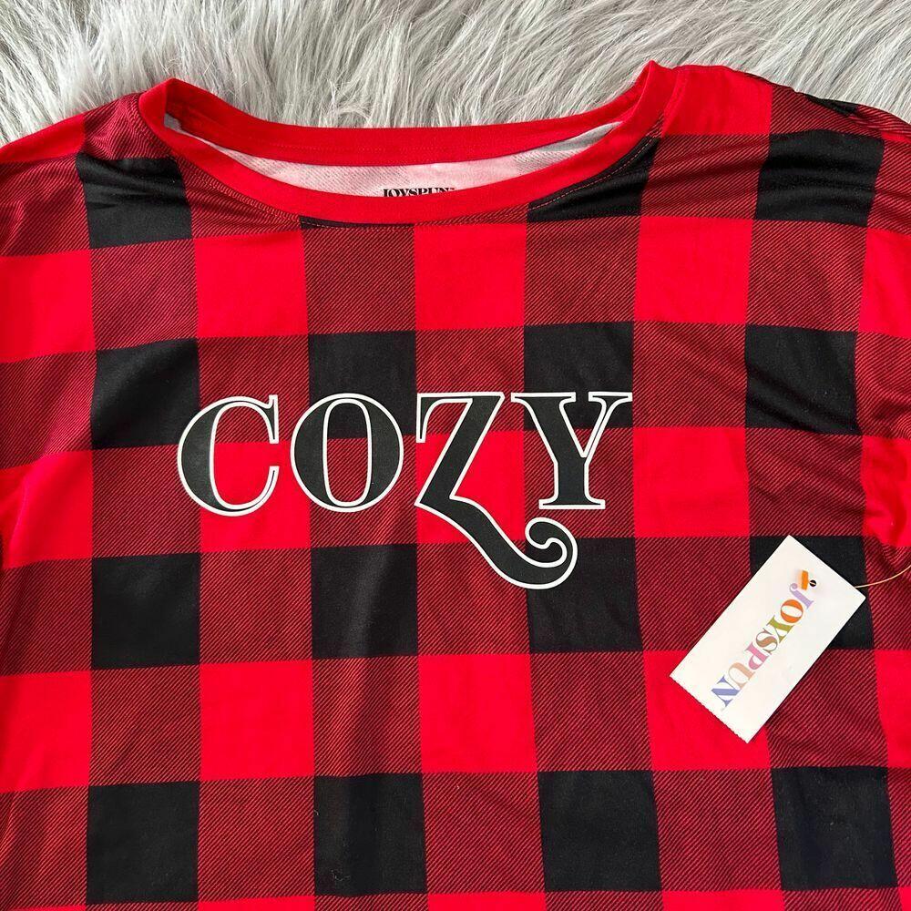 Joyspun Womens Tee & Jogger Pants Pajama Set Red Pepper Buffalo Plaid Sz S (4-6)