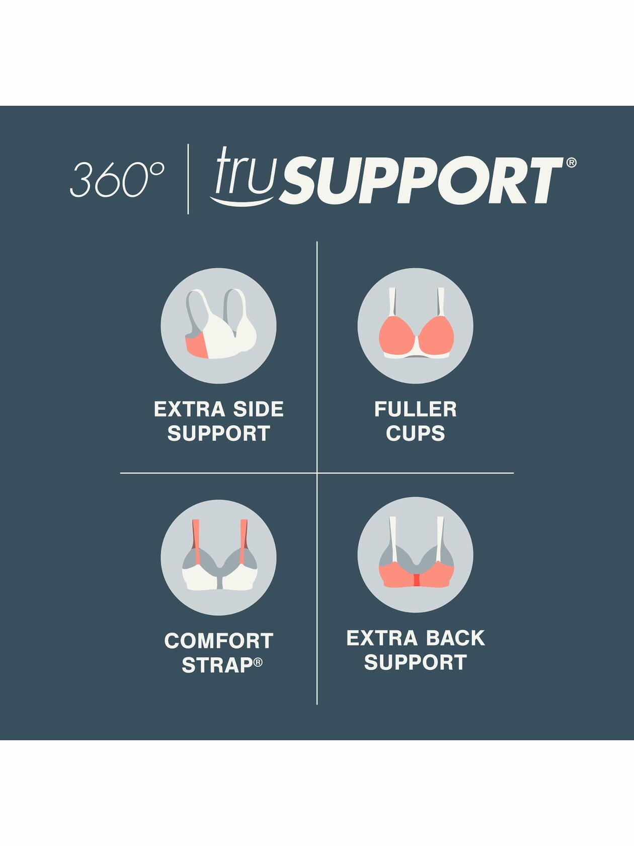 - BUILT-IN COMFORT AND SUPPORT - TruSupport 4-way wireless support system with higher sides, fuller cups, wider straps, and a smoother back.