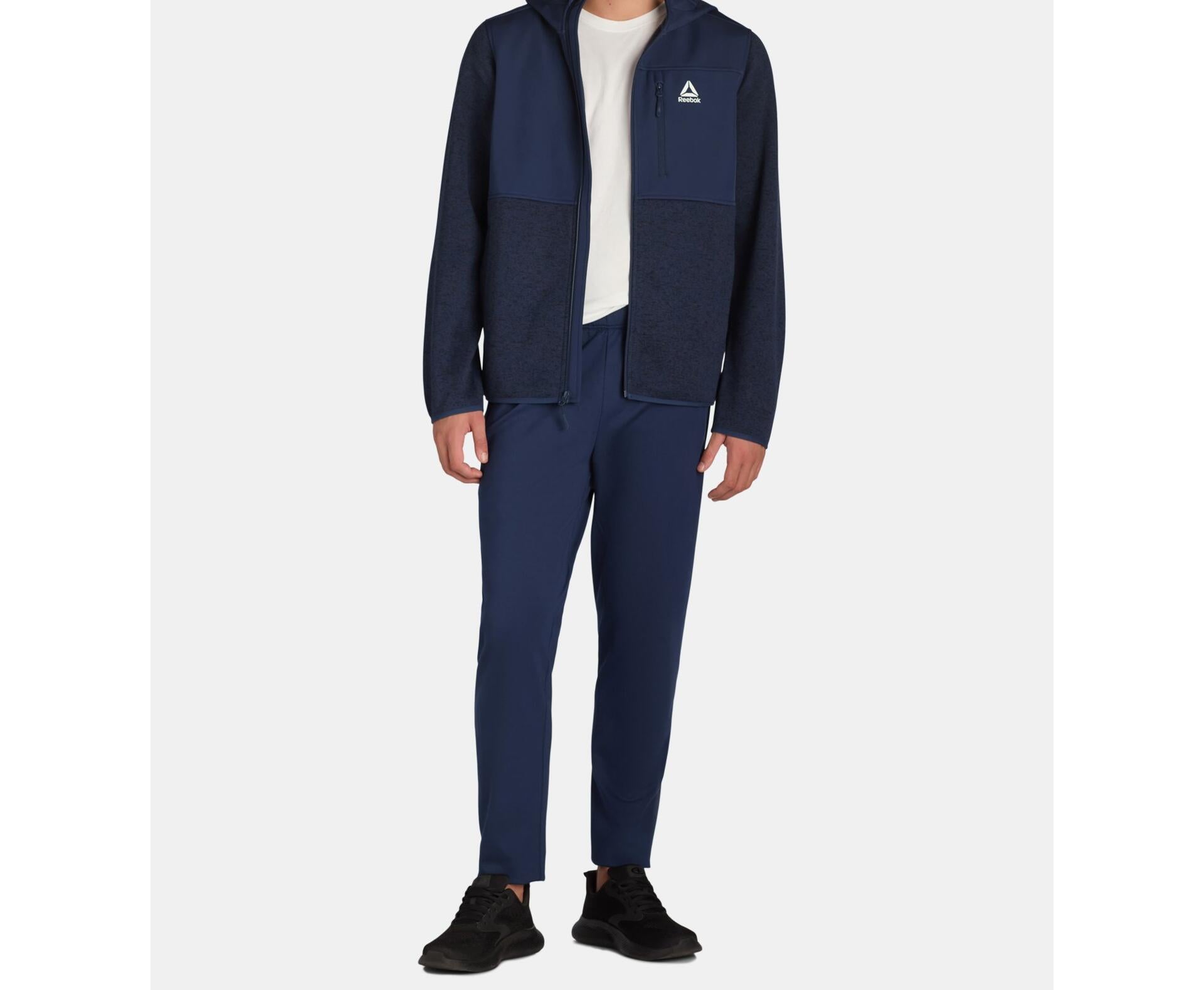 Reebok Delta Mens Hooded Sweater Fleece Jacket Navy Size L