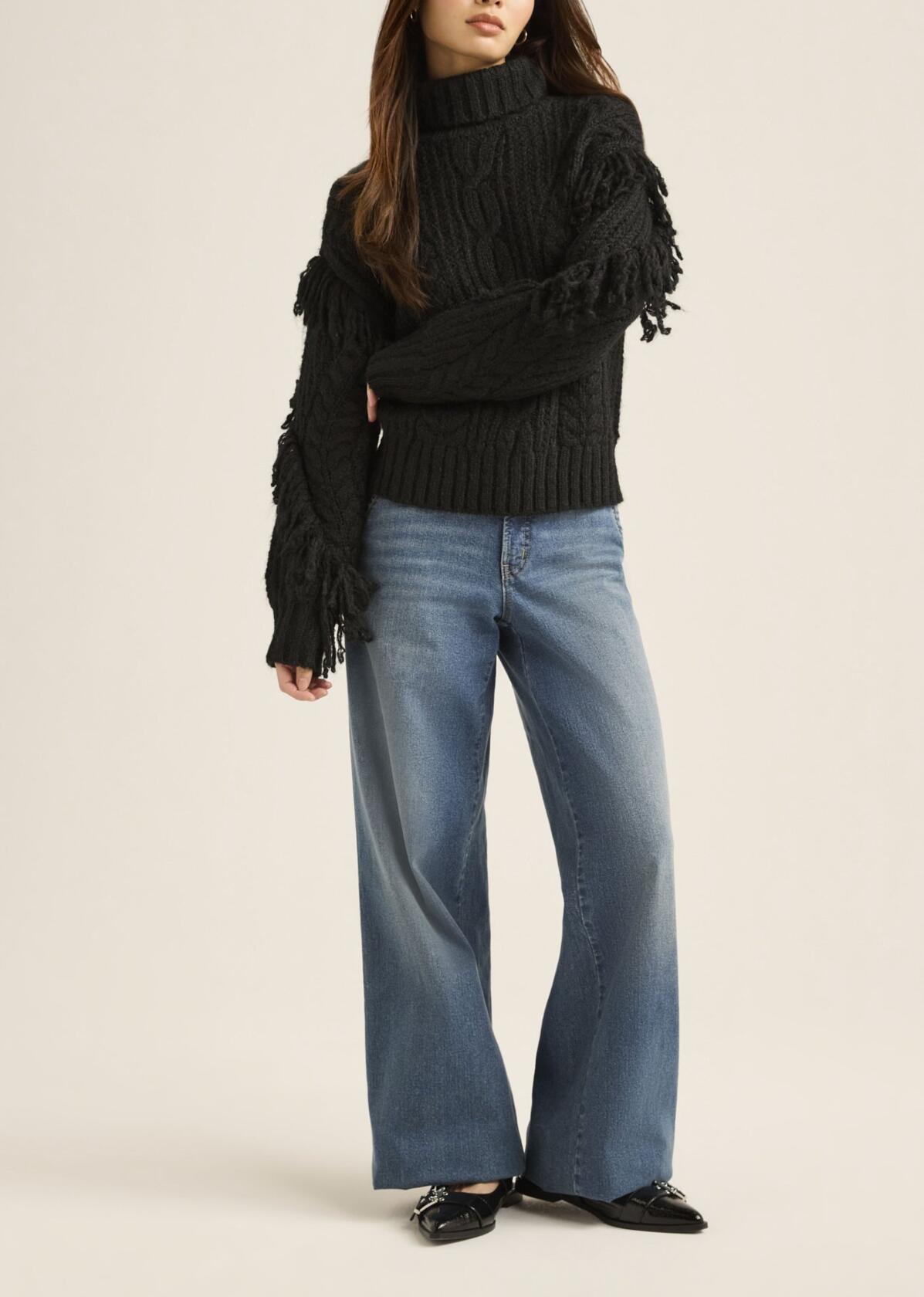 - Cable Knit Fringe Turtleneck Sweater for Women from Scoop