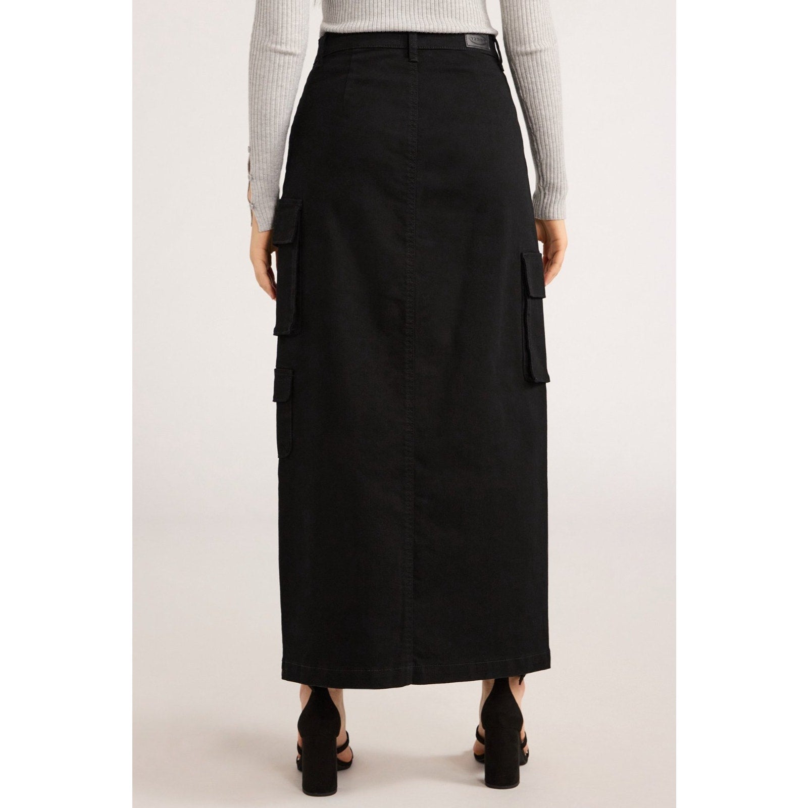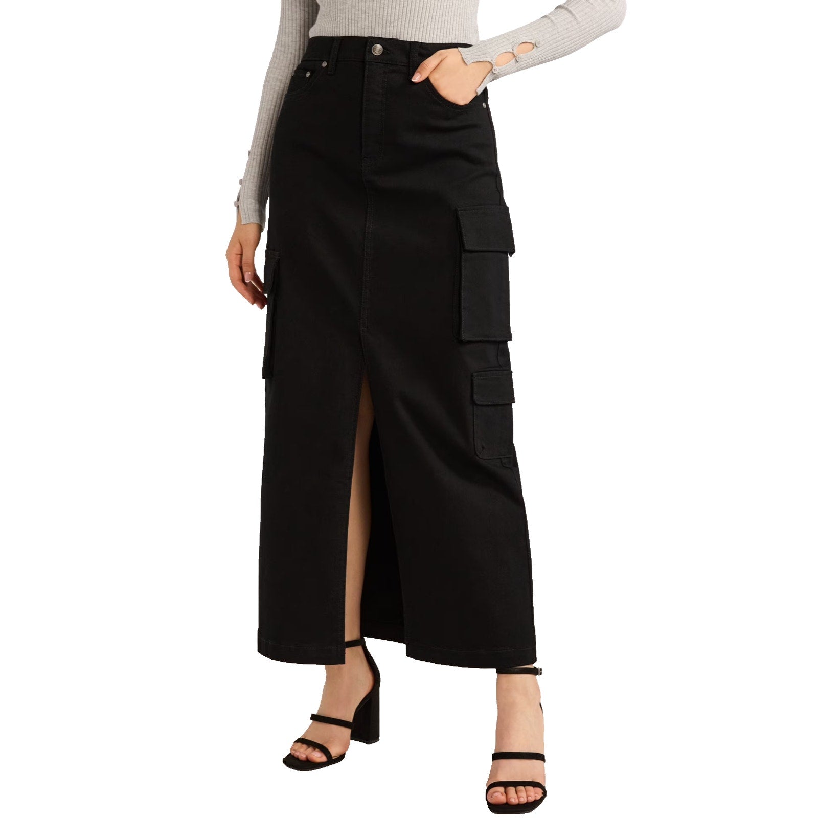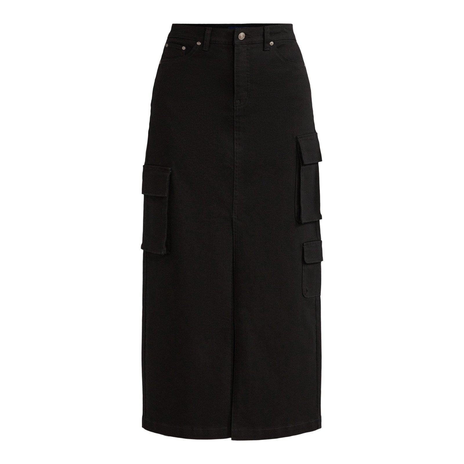 Scoop Womens Denim Cargo Maxi Skirt Black Soot Size 10 High Rise Pockets Relaxed