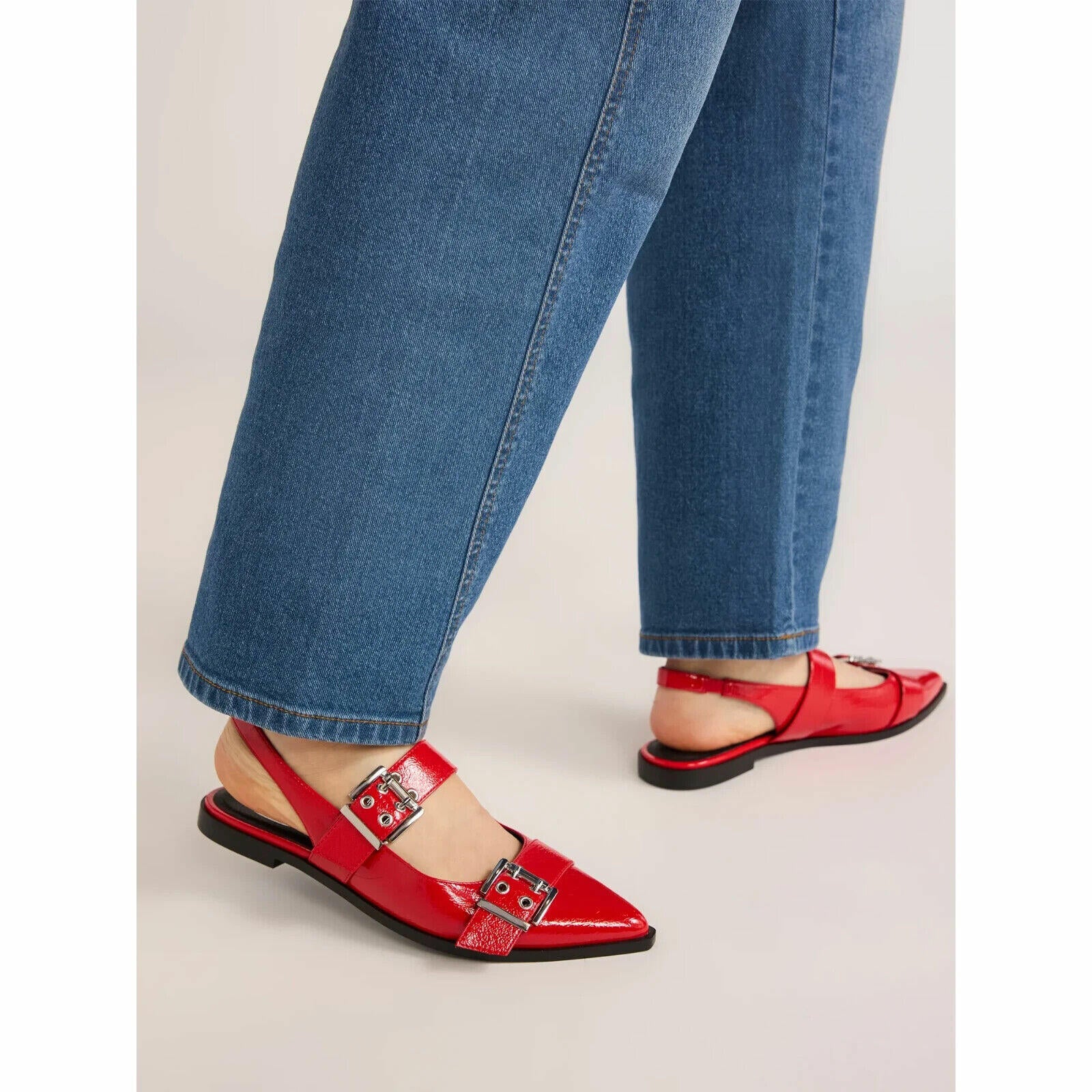 Scoop Womens Faux Leather Buckle Slingback Strap Slip-On Trend Flats Red Size 7M