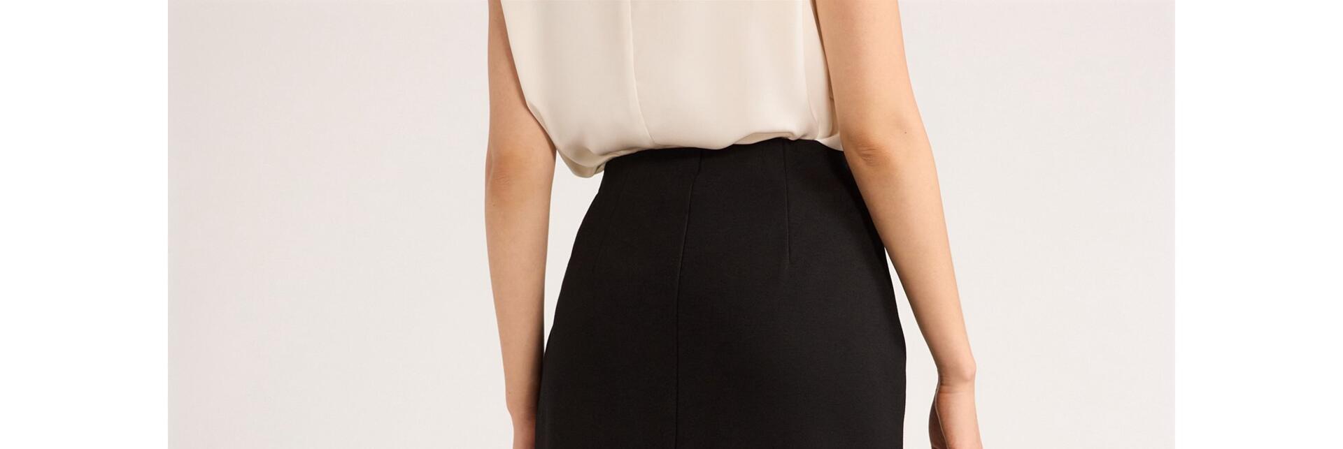 - Features: Back seam and dart shaping; back walking slit