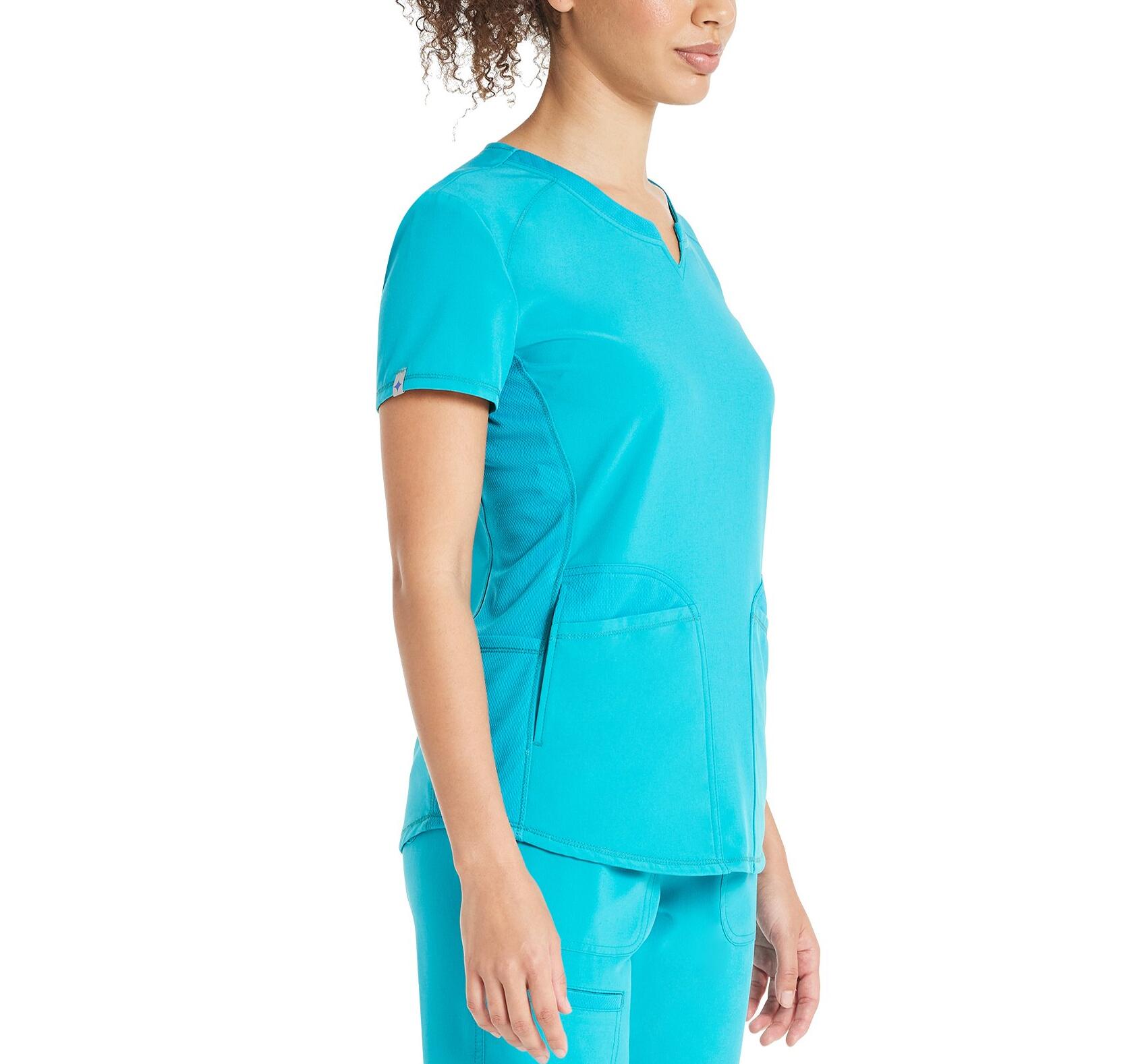 Slip into comfort with this ultra-soft scrubs top designed for simple styling. This fashionable top features a notch neck and a flattering contemporary fit for all body types. Enjoy three roomy pockets an instrument loop and moisture control fabric with plenty of stretch. Grab the matching pant to complete the look.