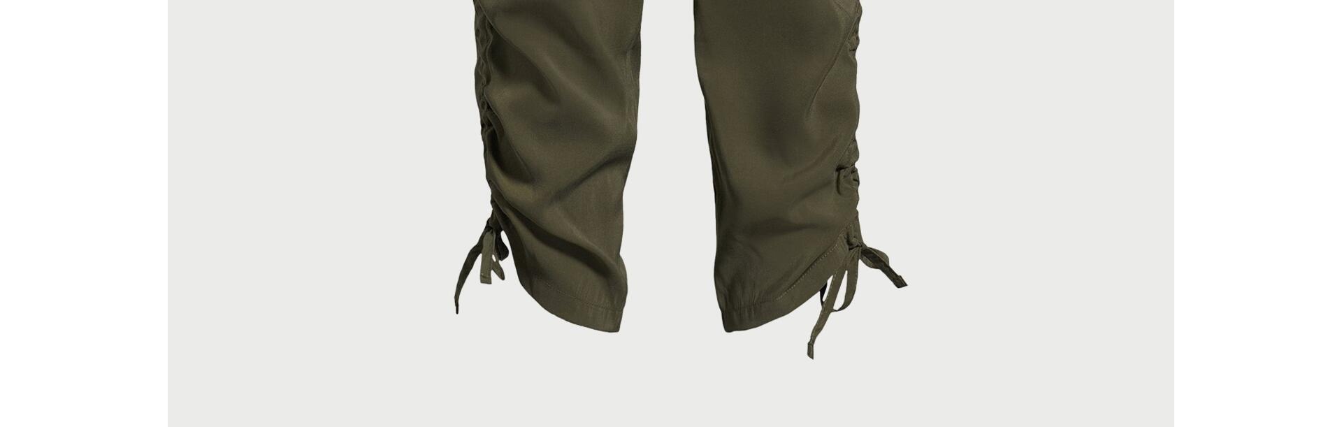 - Features: Drawstring tie; satin-like finish; rouched hem with adjustable tie closure