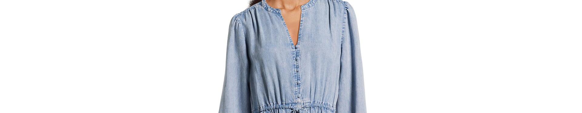 Time and Tru Womens Button Front Drawstring Waist Dress Light Blue Size M