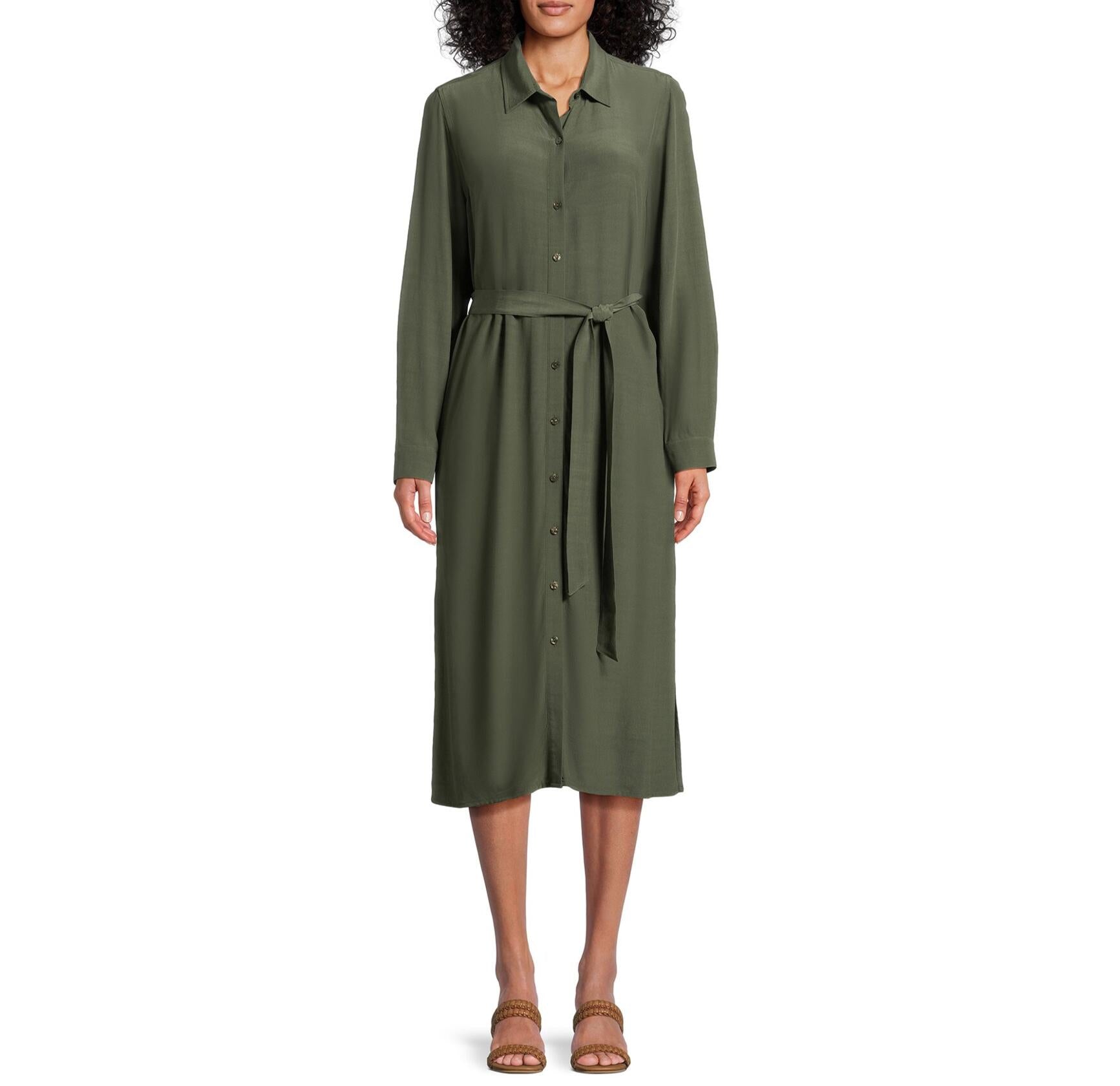 - Women's Button Front Shirt Dress with Long Sleeves from Time and Tru