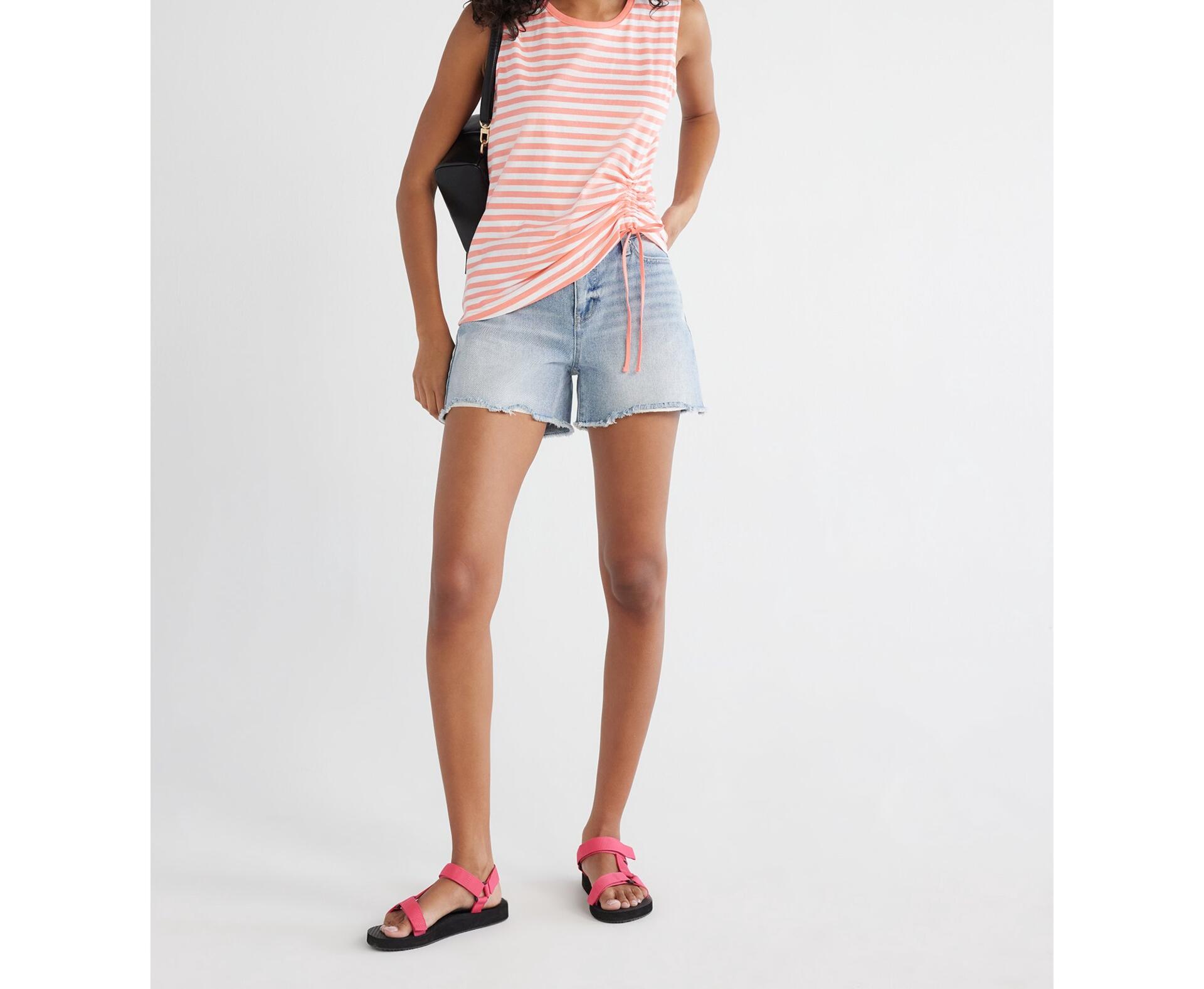 Time and Tru Womens Denim Shorts with Destructed Hem 4" Inseam Light Wash Sz 14