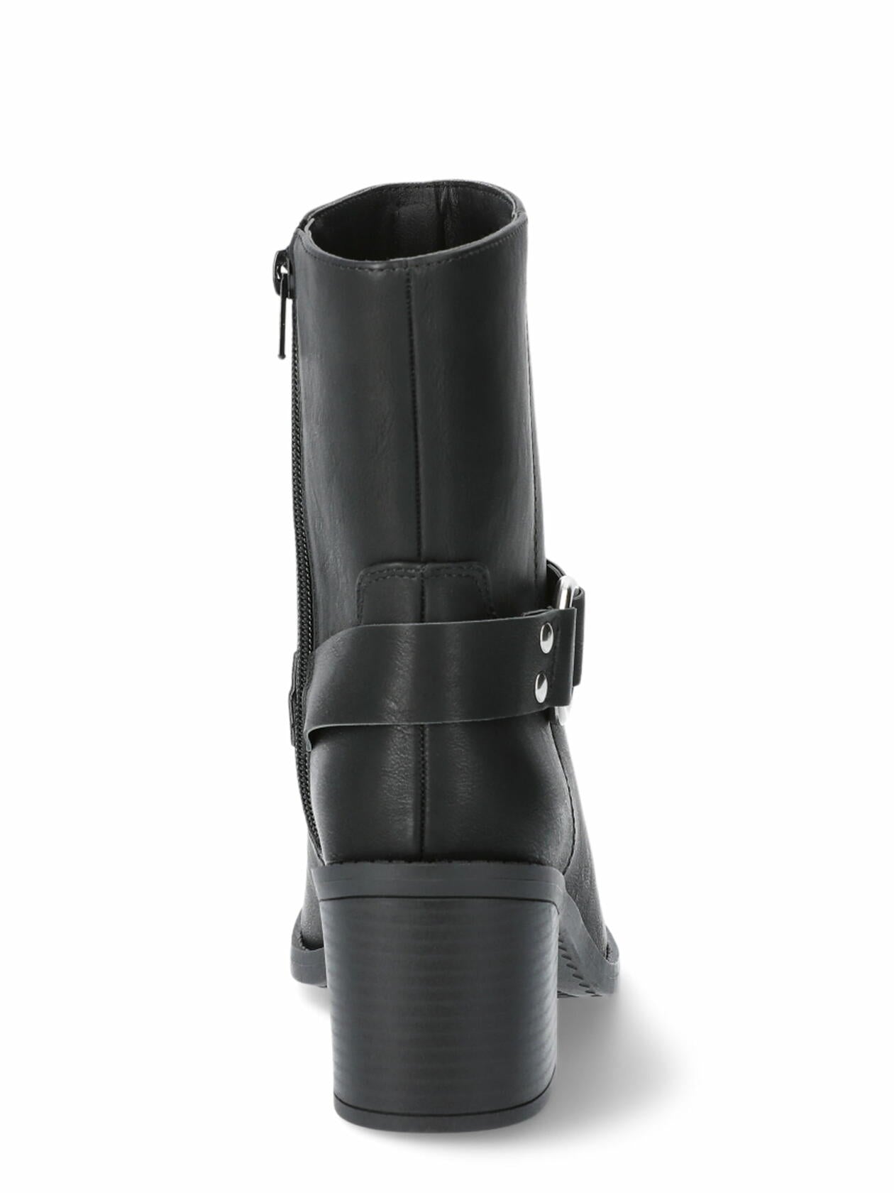 Time and Tru Womens Heeled Moto Boots Black Size 9